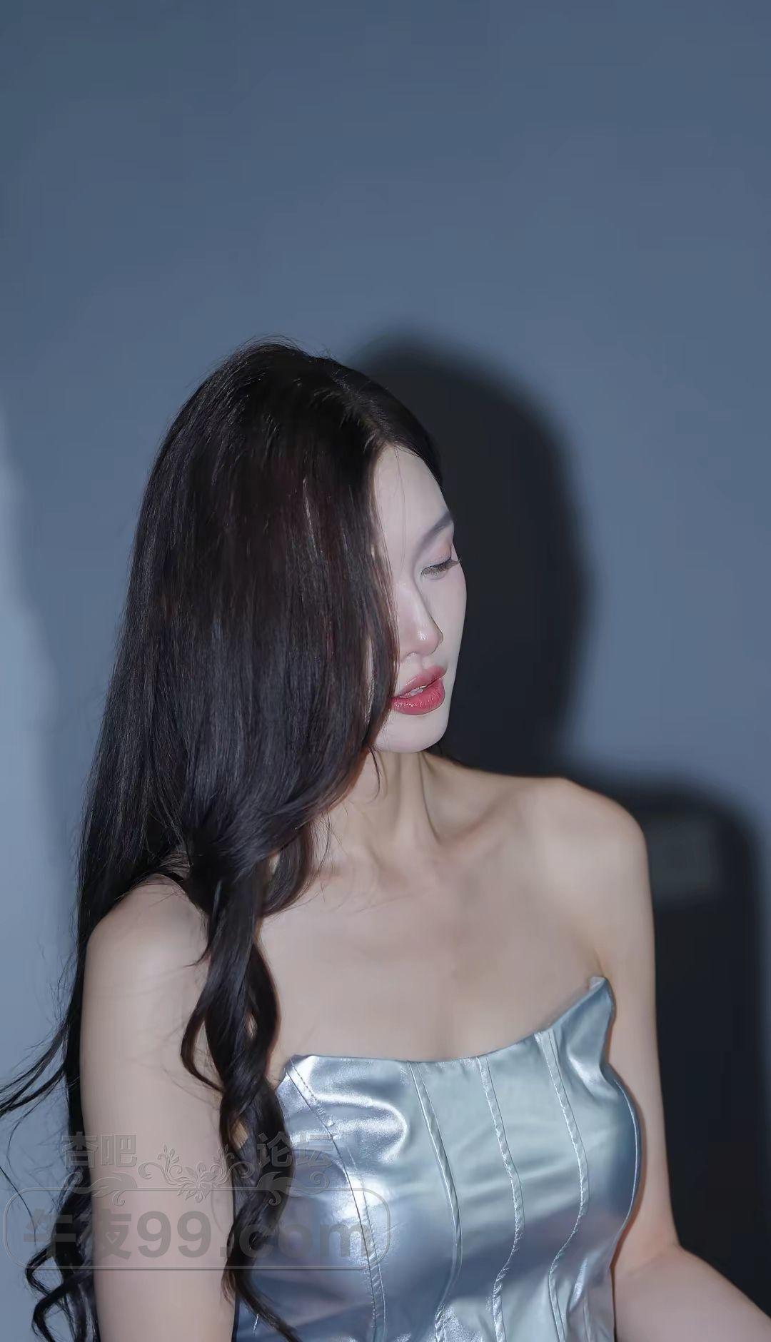 长发美女银色抹胸很耀眼,裸露的双肩锁骨非常漂亮,大长腿美脚丫,叫人喜欢。