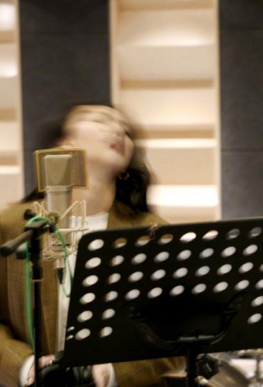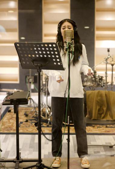 美女弦子黄色上衣录制歌曲清新甜美生活【11P】